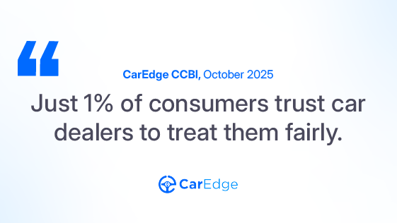 - 82% report low trust in dealerships to treat consumers fairly (only 1% express high trust)