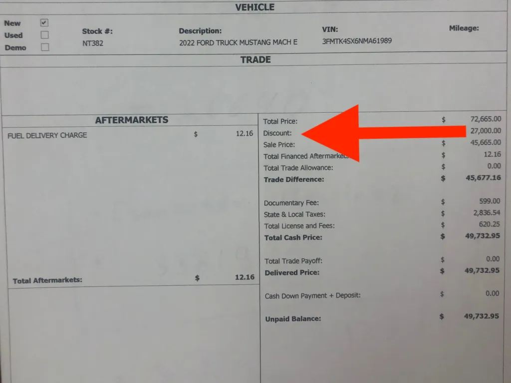 That’s right, a 48% drop in market value from day one. Although this was a 2022 model, roughly two-thirds of all new Mustang Mach-Es on dealer lots today are leftovers from 2023. No one should be paying MSRP for last year’s cars in spring or summer of 2024. See how low prices are near you.