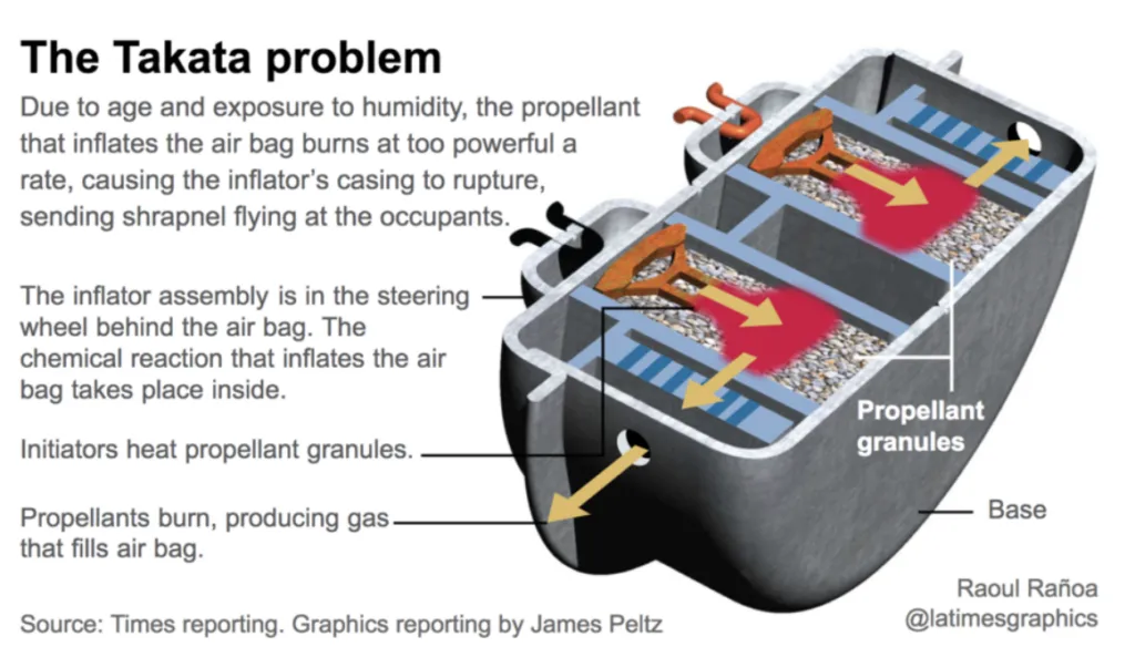 Takata’s massive airbag recalls have been ongoing for over a decade. Since 2013, over 40 million cars and trucks have been recalled due to dangerous hazards from the airbags.